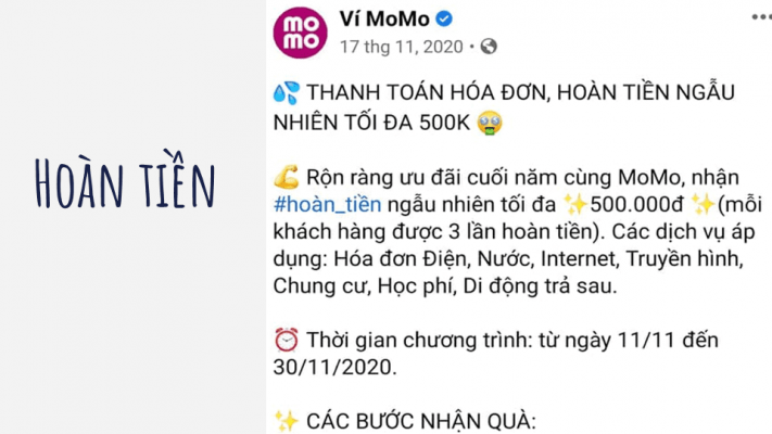 Hoàn tiền là một hình thức khuyến mãi mới được phổ biến ở Việt Nam trong thời gian gần đây. Khách hàng ý thức được lợi ích từ việc mua hàng hoàn tiền gần như tương đương với việc sẽ trả ít hơn ngay từ đầu, chỉ khác là khoản chênh lệch sẽ được tiêu thụ trong các lần tới.