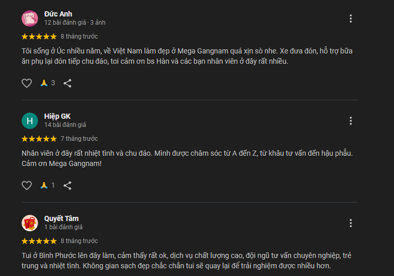 Ngoài chi nhánh này, bạn cũng có thể tìm hiểu một số chi nhánh của Mega Gangnam ở Quận 10 và Hà Nội theo khu vực sinh sống. Cám ơn bạn đã lắng nghe chia sẻ!