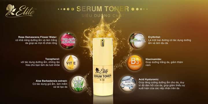 Tinh Chất – Serum Toner: Kết hợp các nguyên liệu làm đẹp truyền thống như: tinh chất hoa hồng, chiết xuất lô hội, Viatamin E,….Sản phẩm giúp cung cấp độ ẩm cần thiết cho da góp phần làm giảm nếp nhăn và ngăn ngừa lão hóa da. Sản phẩm còn có nhiều tác dụng khác như làm se khít lỗ chân lông, ngăn ngừa sự phát triển của mụn, làm săn chắc da, tẩy tế bào chết, cân bằng độ PH…