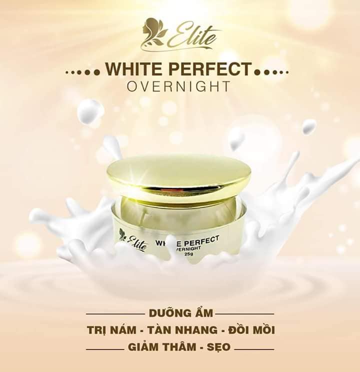 Kem dưỡng đêm White Perfect Over Night: Chứa Collagen và các tinh chất thiên nhiên khác để giúp nuôi dưỡng tăng độ đàn hồi cho da. Cải tạo làn da trong giấc ngủ, chống lão hoá và đem đến độ láng mượt mà cho da bằng chiết xuất collagen và elastine. Đặc biệt kem đêm còn có chức năng khôi phục lại da bị hư hại trong thời gian ban đêm, trong khi vẫn cung cấp chất dinh dưỡng cần thiết cho da vững chắc, dưỡng ẩm và sáng màu da cho bạn bắt đầu một ngày mới với làn da tươi trẻ. Dùng đều đặn trước khi đi ngủ, bạn sẽ cảm giác được làn da mình thay đổi từng ngày vào buổi sáng hôm sau. Bạn sẽ cảm nhận được sự mềm mại, mượt mà trên làn da của mình, hiệu quả khác biệt chỉ trong 2 tuần mà thôi.