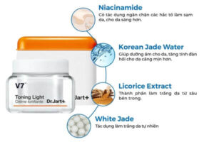 Kem Dưỡng Da V7 Toning Light Dr.Jart+ có bảng thành phần tương đối đẹp, lành tính và dễ sử dụng đối với phụ nữ Việt Nam