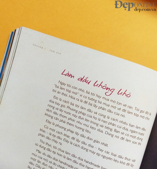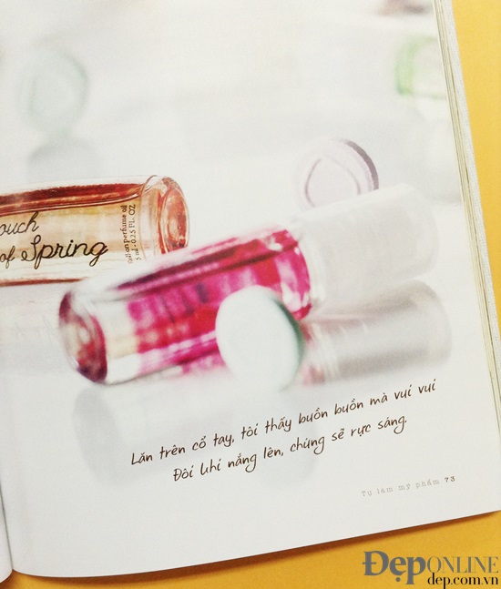 Ngoài công thức và những lời dặn dò được ghi lại rõ ràng, dễ hiểu, Thư và Giang làm được một việc lớn hơn: truyền cảm hứng làm mỹ phẩm cho những người chưa bao giờ muốn động tay vào nguyên liệu thô sơ. Lật ngẫu nhiên một trang sách bất kỳ, bạn đều có thể đọc được những dòng tâm sự đầy hạnh phúc. “Khi làm mỹ phẩm, bạn chứng kiến những cảnh tượng kỳ diệu mà bạn sẽ không bao giờ biết được nếu chỉ đi mua về”; “Khoảnh khắc trong vắt sẽ chỉ diễn ra rất ngắn trong cuộc đời một thỏi son”; “Thú vị nhất là việc có thể nhìn vào một công thức son hay xà phòng mà tưởng tượng ra được độ cứng mềm, độ dưỡng của nó… Điều ấy cũng giống như bạn biết đọc một ngôn ngữ không phải chữ”…